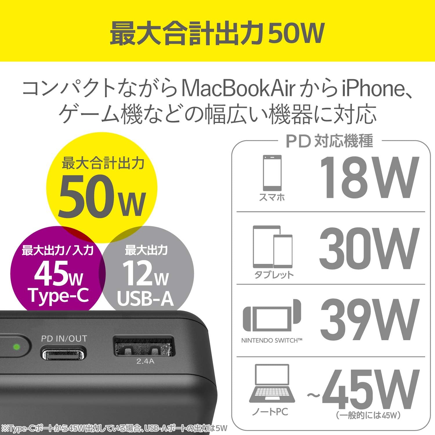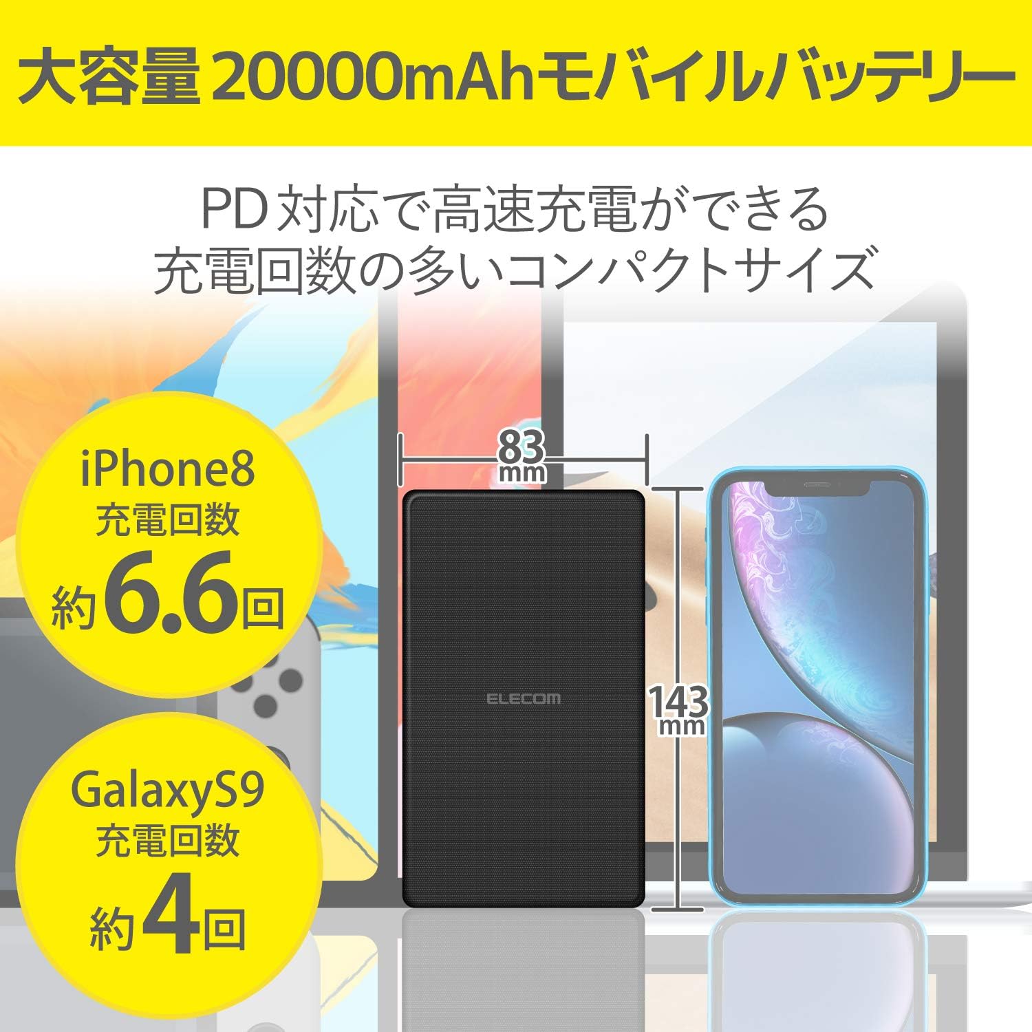 エレコム モバイルバッテリー 20000mAh DE-C19L-20000BK