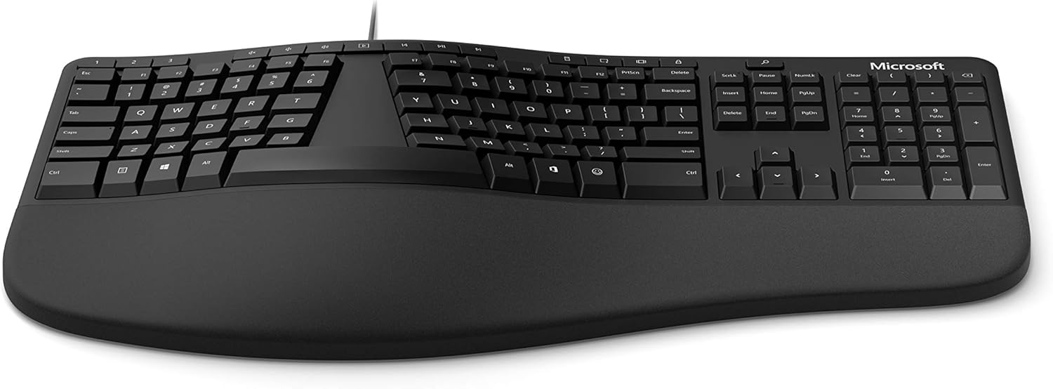 **人体工学に基づいて設計されたエルゴノミクスデザインのキーボード。旧モデル4000系はワイヤレスだったがこちらは有線かつテンキー一体型。Microsoftのこのシリーズを愛用するユーザーは日本にも多いが日本語配列だとキー設定に不具合があったり、エルゴノミクスの良さを活かせないという声も。日本の公式ストアでは日本語配列しか購入できないため、US版のMicrosoftストアかAmazon.comで購入する必要がある。ただどちらかというと旧モデル4000系のワイヤレスモデルを好む人の声が多い。**